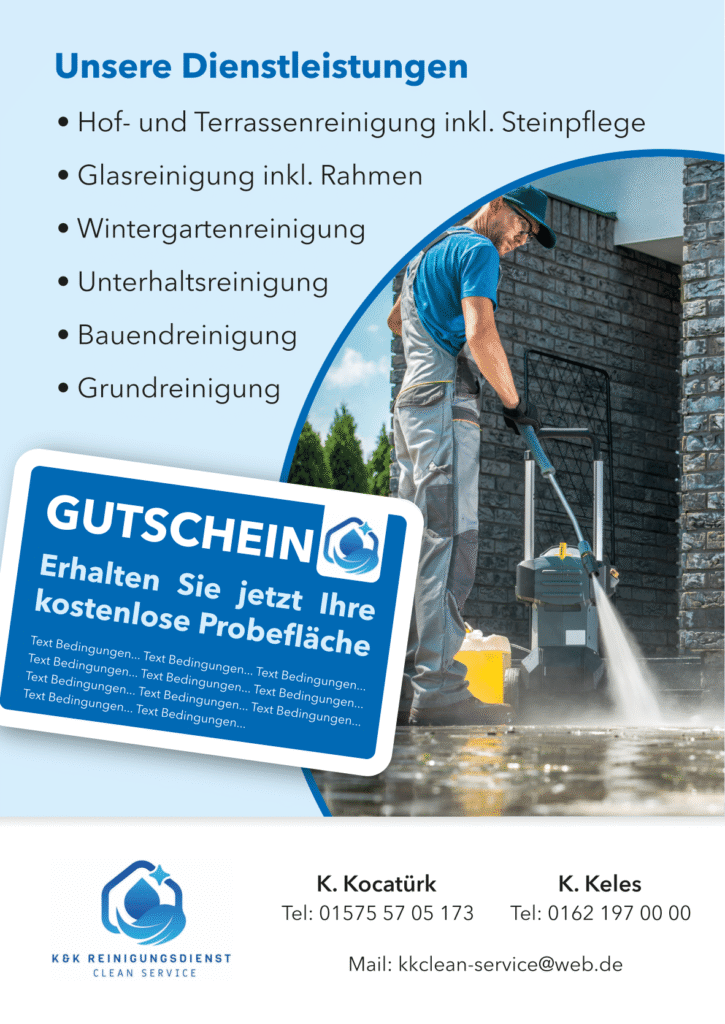 Regelmäßige Reinigung ist die Basis für ein gepflegtes und angenehmes Umfeld – ob im Büro, Geschäft oder Wohnbereich. Wir übernehmen zuverlässig alle laufenden Reinigungsarbeiten wie Staubwischen, Bodenpflege, Sanitärreinigung und mehr. Für Hygiene, die bleibt.